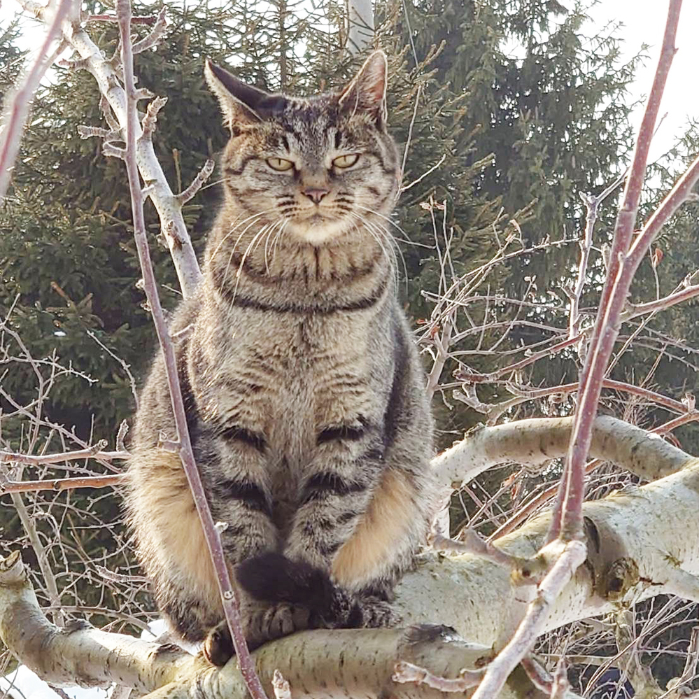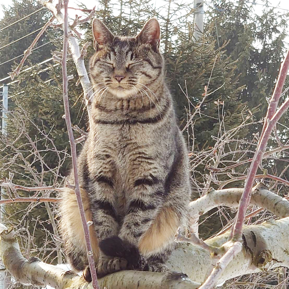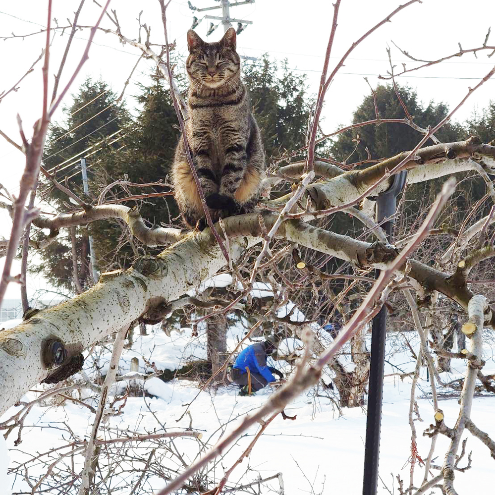 タビは冬でも冬眠しない、りんごの木をかじってしまうネズミ退治担当です。