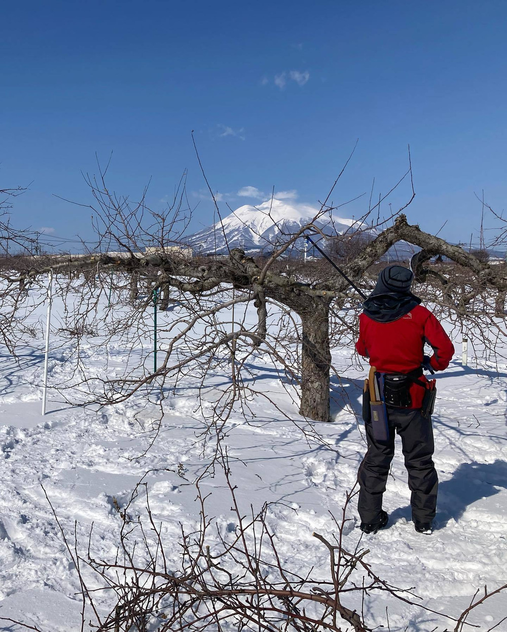 晴れて岩木山がきれいに見える日はテンション上がりますね‼️🏔(2枚目、剪定レディーとくっきり岩木山📸)