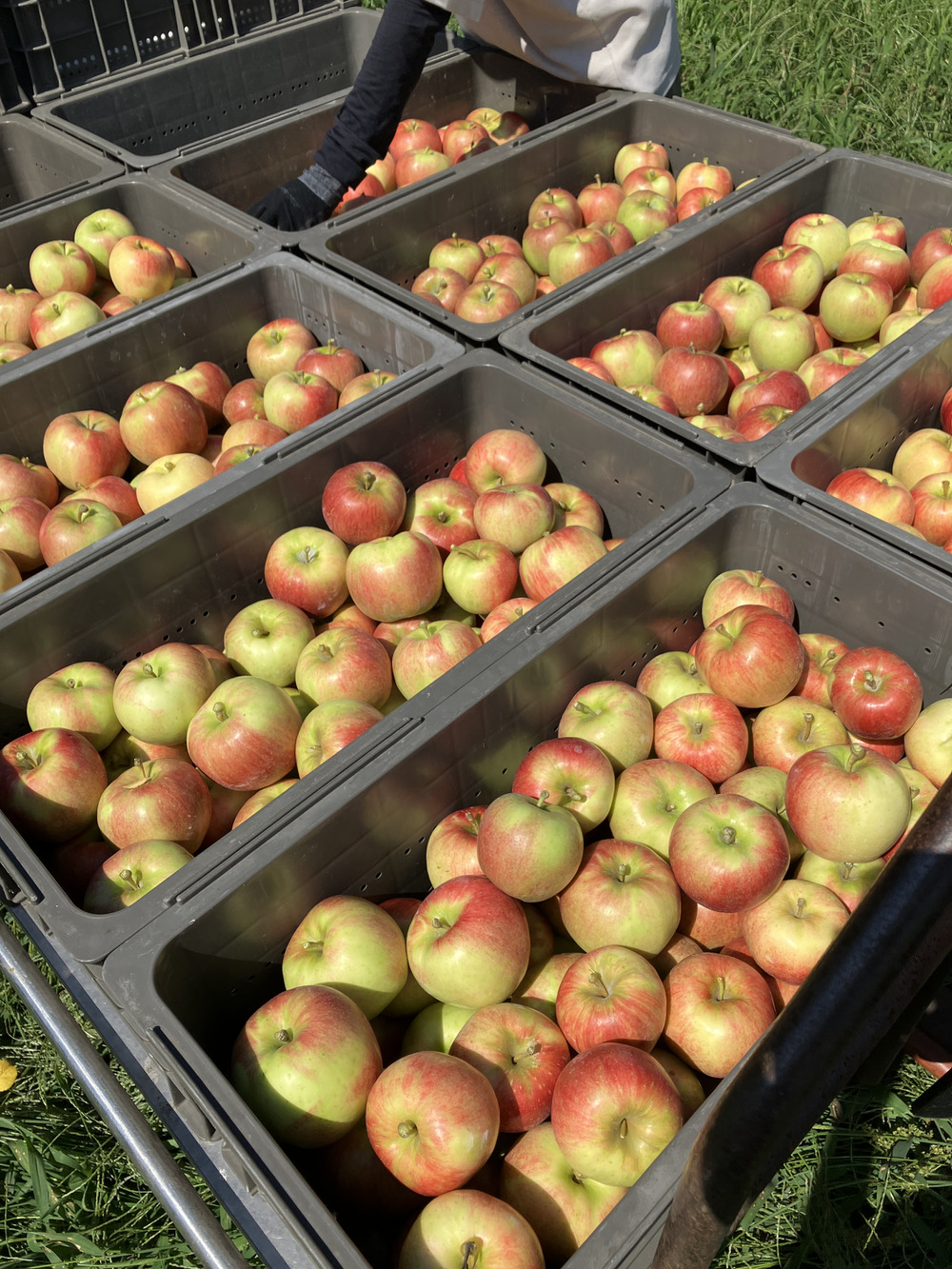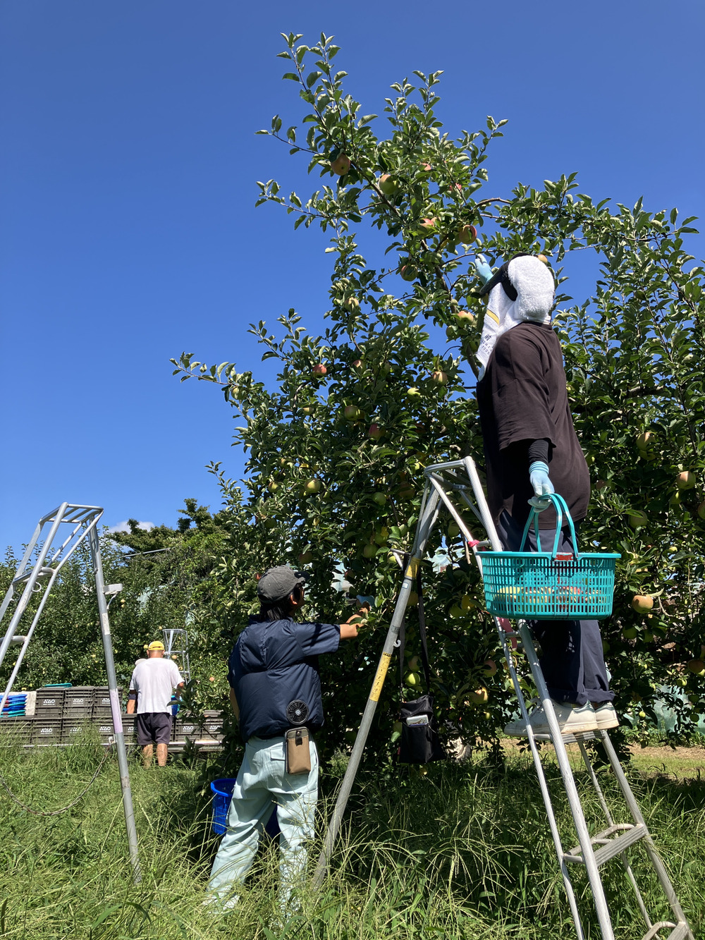 しっかりと熟度を見極めて、食べごろを迎えたりんごのみ収穫していきます🧺