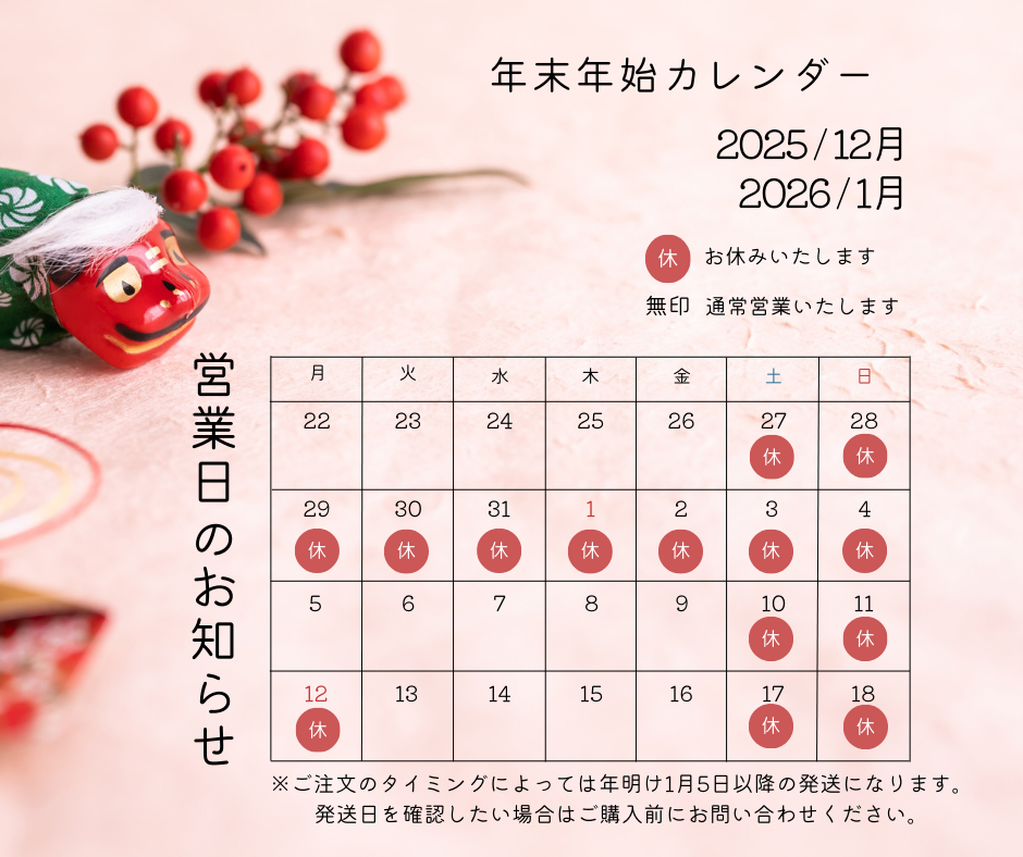 お休み期間中もご注文は承りますが、製造発送は行いませんので