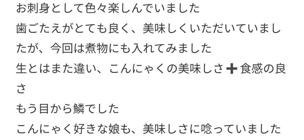 食べチョクに限らず、今までいろんなところで生芋こんにゃくをご注文いただき、たくさんの嬉しいお声をいただきました!!!