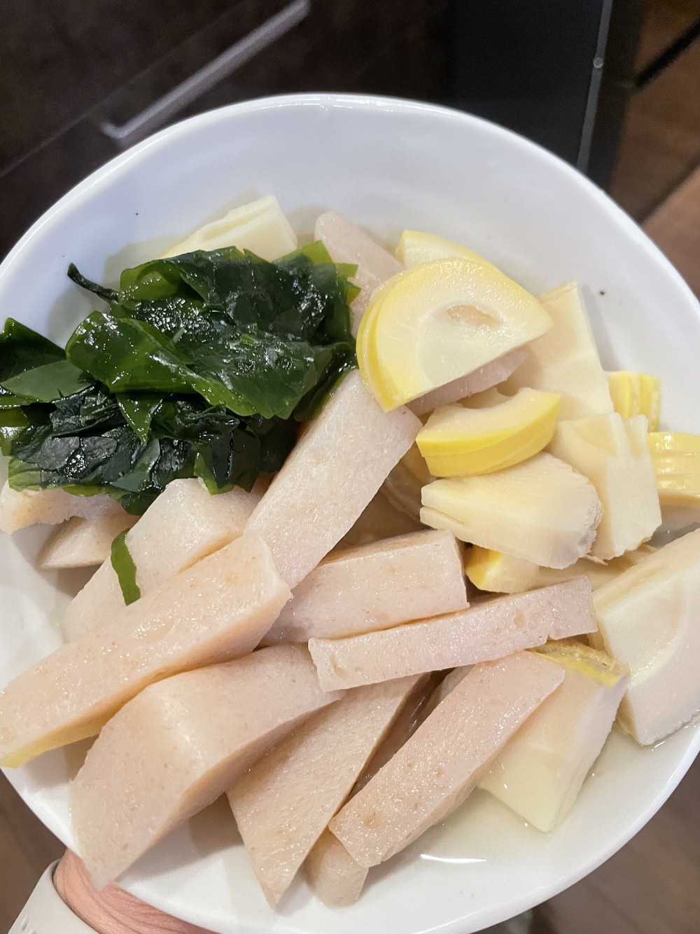 今日は下茹で済みのたけのこを頂いたので、生芋こんにゃくと一緒にあっさりお出汁とパパッと煮てみました!
