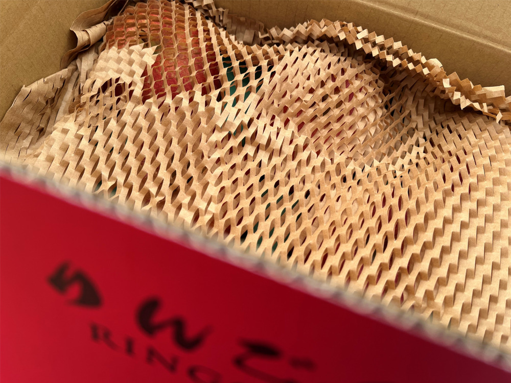 先日お客さまより梱包資材のアイデアをご提供いただき、 1/21 の発送分よりパルプの緩衝材をリンゴのすぐ上に入れさせていただいております。これはお届けするリンゴのダメージを少しでも軽減させるための工夫です🍎当園ではプラスチックフリー化しておりますので紙資材の緩衝材になります。伸ばすと蜂の巣のようなハニカム構造になるユニークな緩衝材です🐝