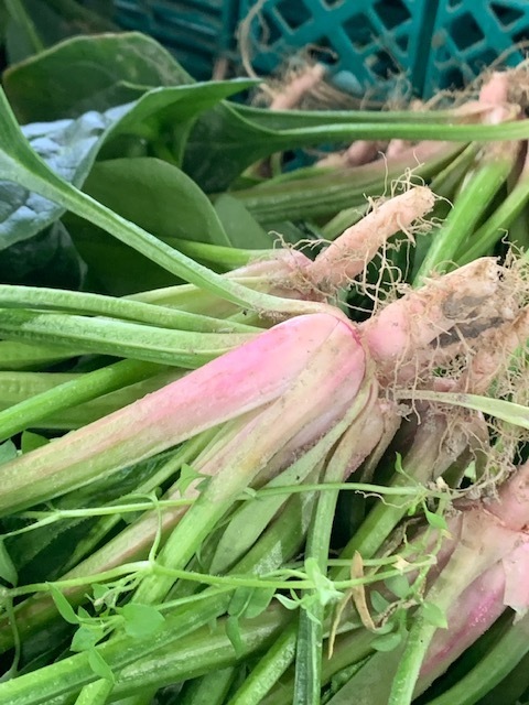 根っこが赤くて、葉肉の厚い甘いほうれん草。