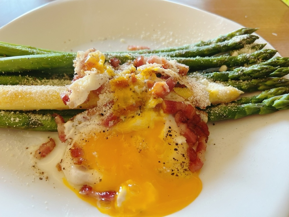 卵とアスパラ、ベーコン