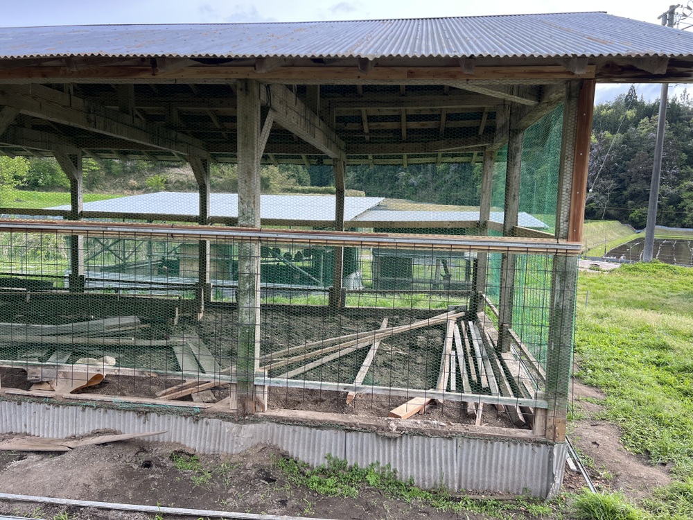 一番古い鶏舎 築25年経ち補修しながら使っていた金網もボロくなってきたのて、鶏を出荷し鶏舎が空いたタイミングで一気に金網を剥がしリフォーム!