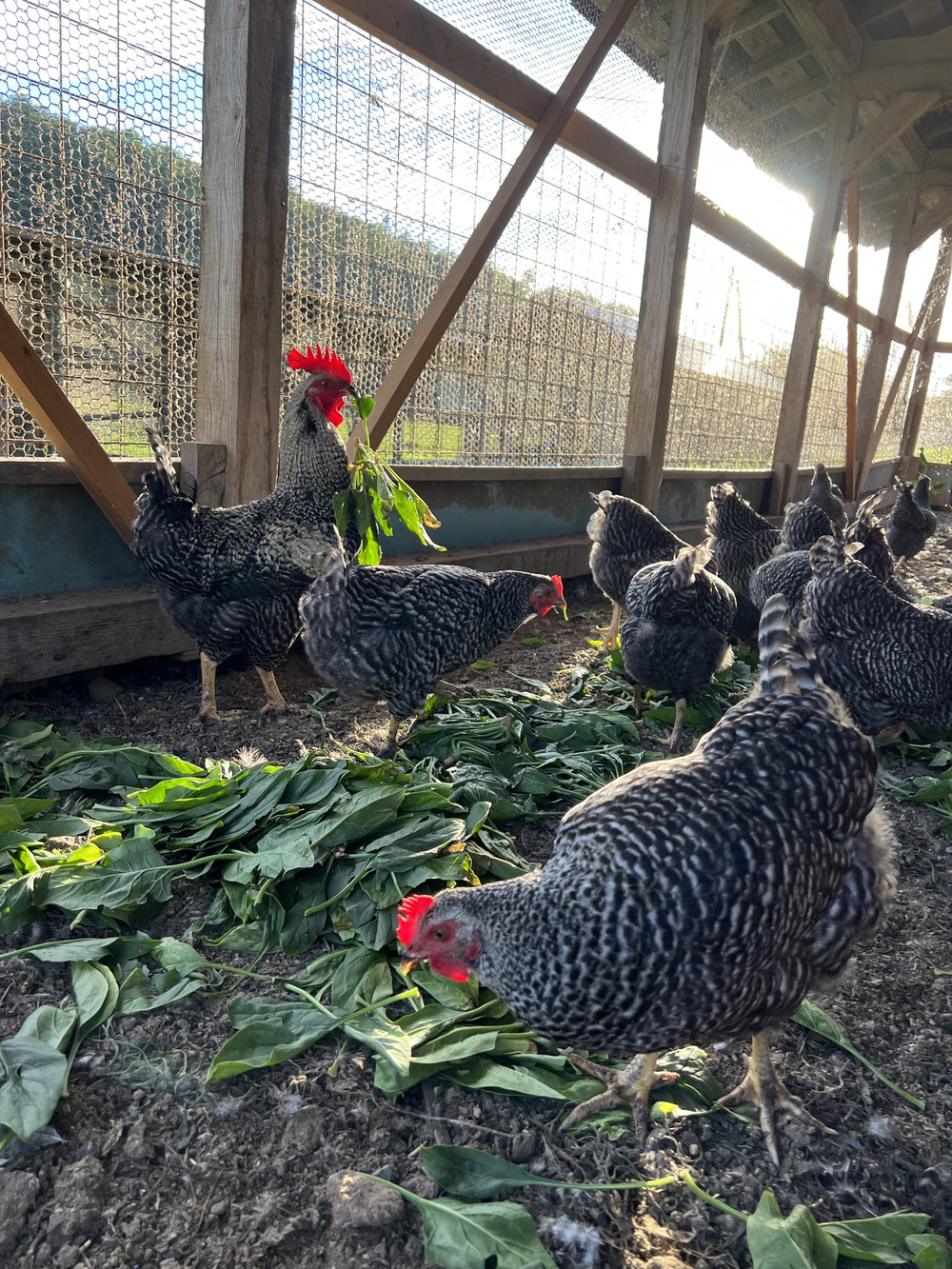 毎日野菜を沢山もらって、鶏たちももりもり食べています