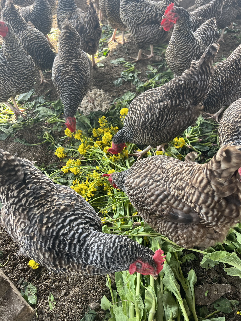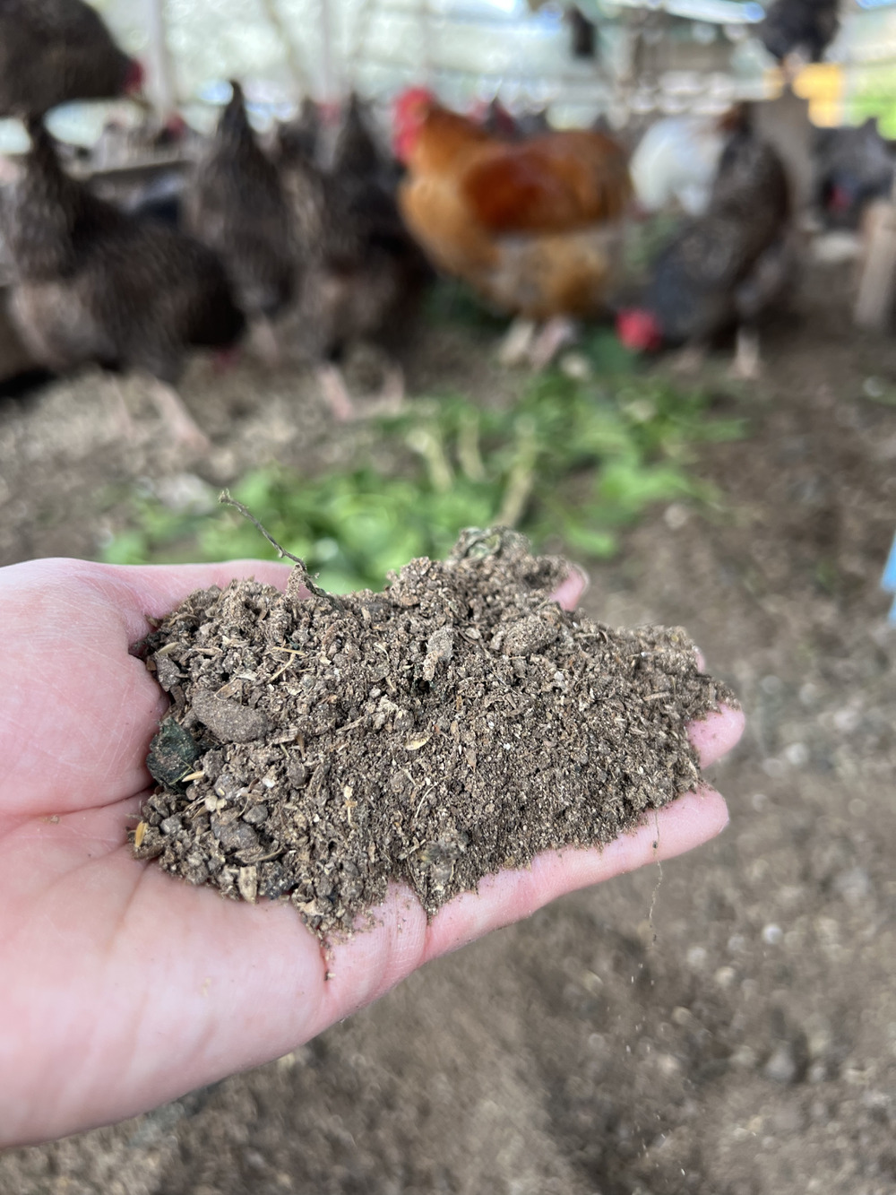平飼いでは籾殻、鶏の糞、食べ残した餌を鶏が毎日脚でまぜてくれるので鶏糞は発酵し分解し、土みたいなって行きます