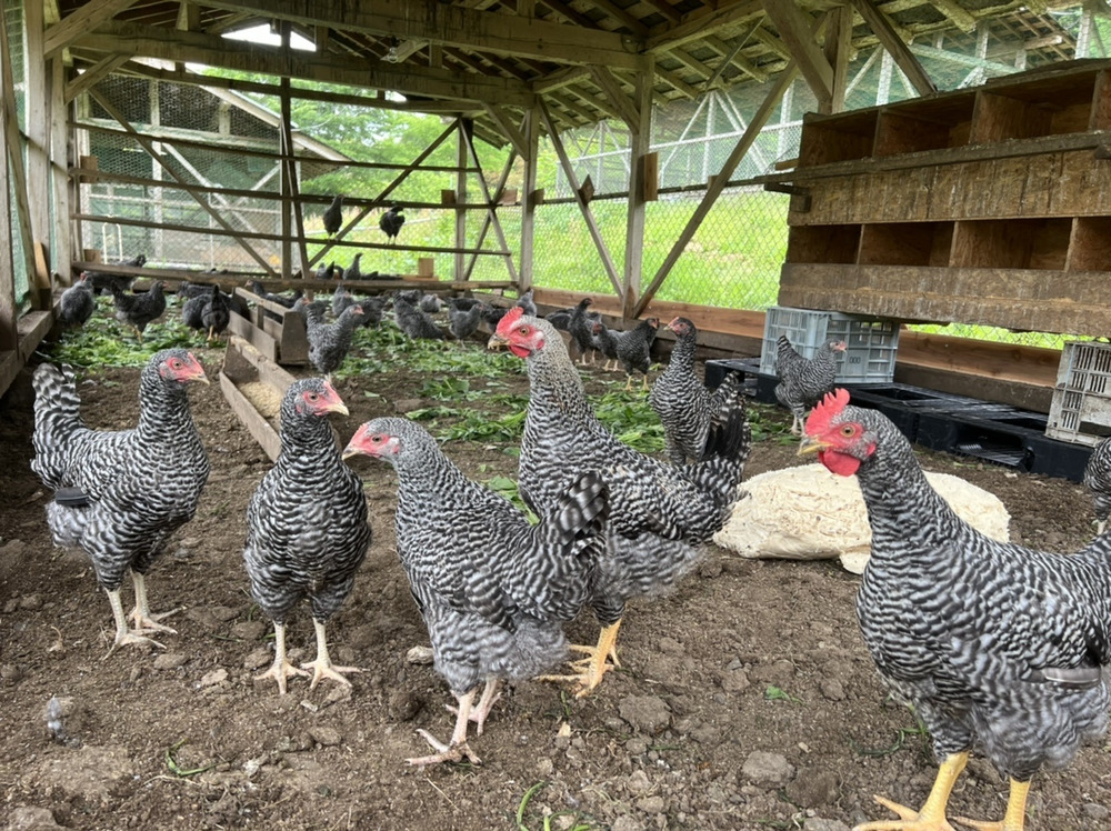 鶏舎の中で鶏がかき混ぜ発酵した鶏糞は美味しい野菜ができると好評です