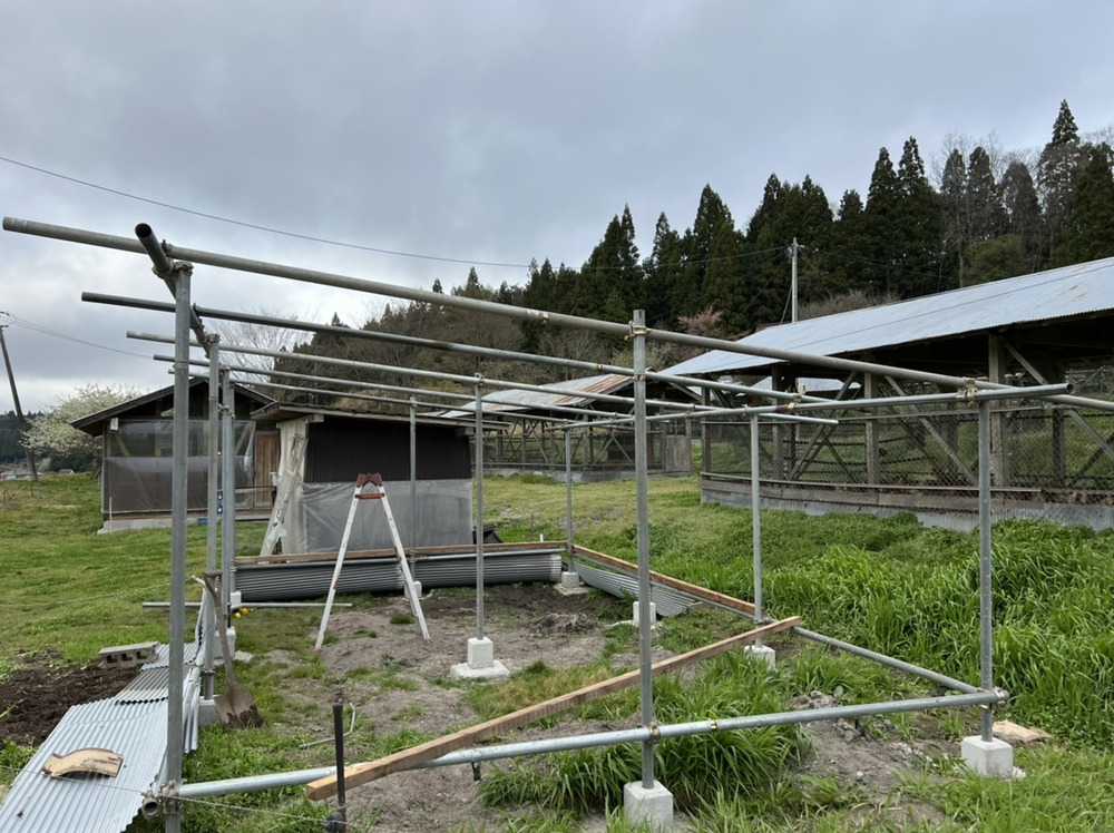 カモや鶏を肥育する小屋を作っています