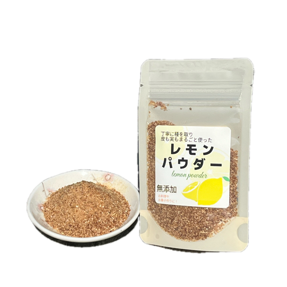 渋味の元である種を一つ一つ手作業で丁寧に取り除き、皮も身も使用しているので香りも味もどちらもいいとこ取りで、粗目の粉末で存在感のあるレモンパウダーです🍋