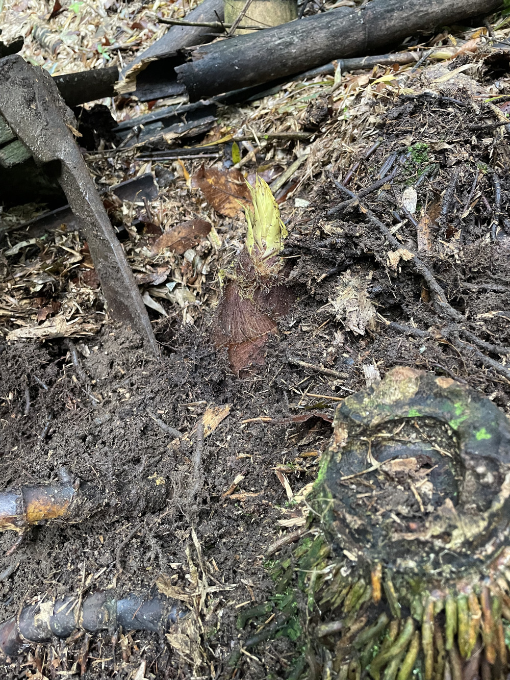 四方を根に囲まれ守られていた"神様タケノコ"