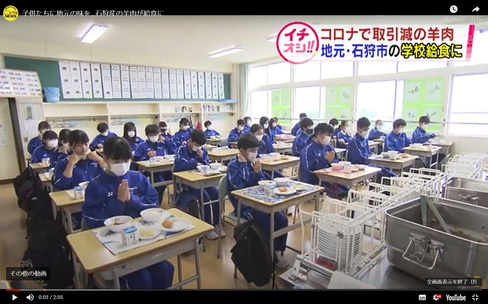 石狩市の小中学校の給食に出た「石狩ひつじ牧場」の羊肉ジンギスカン