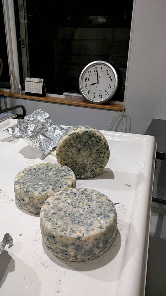 ブルーチーズの赤ちゃん段階で、表面の凸凹が半端ない出来ですね! これがいいんです。中身も相当空洞があるはずです。空洞にわんさか青かびが生えてくるんです。そして、どんどんうま味に変えて行きます。