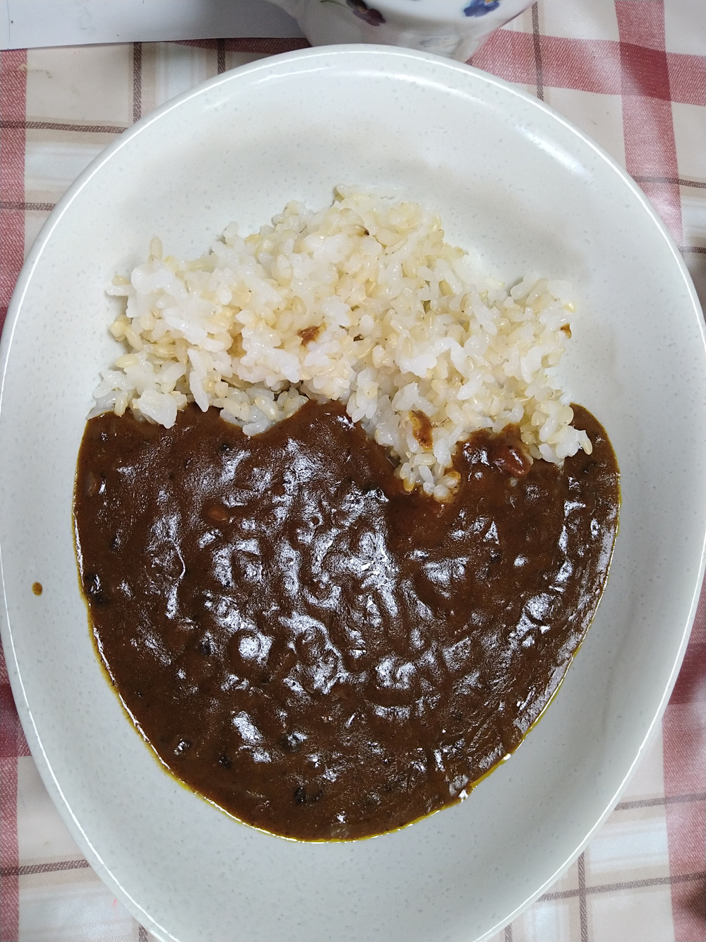 玄米入りご飯のハヤシライスです。分かりにくいけど野菜入り^_^