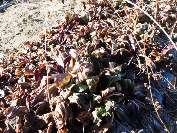 冬になり、チコリーの状態は一旦改善に向かいましたが、12月中旬以降の朝の凍結が繰り返されたことで、葉が凍傷状態になるものが多発し、収量確保が困難な状況となりました。