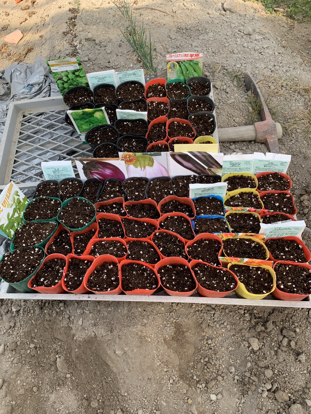 おナスやトマト、マーシュちゃんなどなどの種まきをしました😁