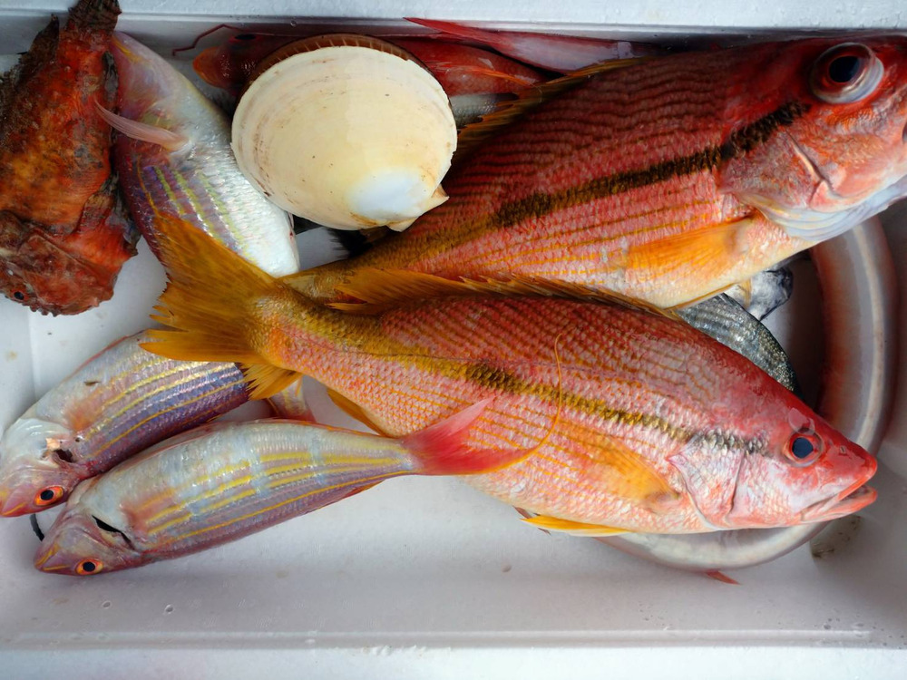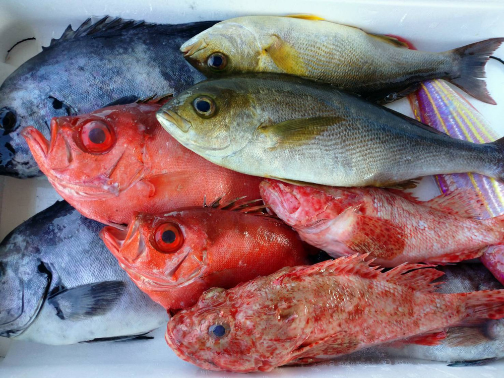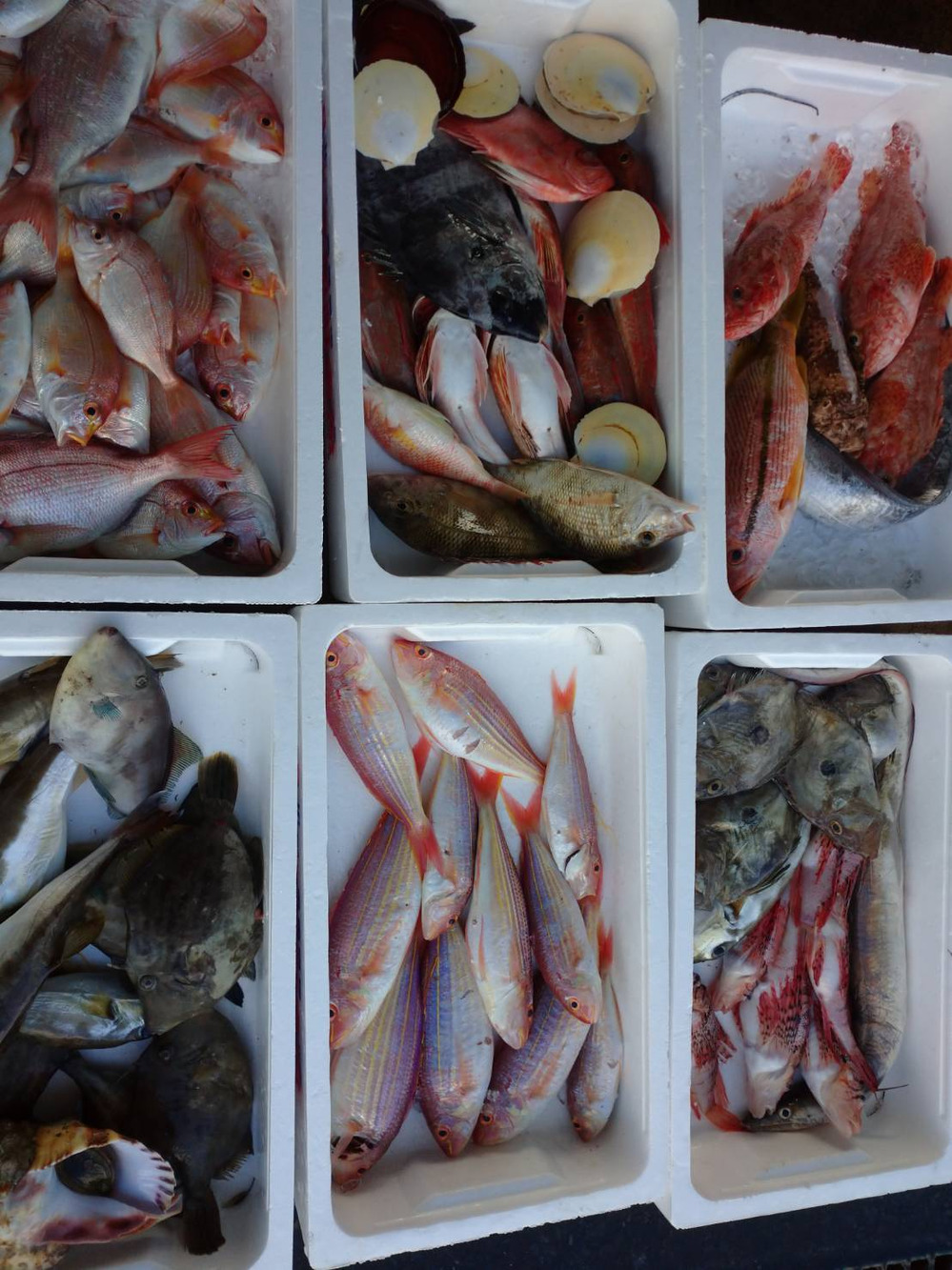 昨日も沢山色とりどりの魚たちが水揚げされました。(✌