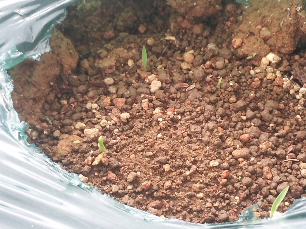 今週追加で種まきしたところは雨の後の日差しで芽が出てました。