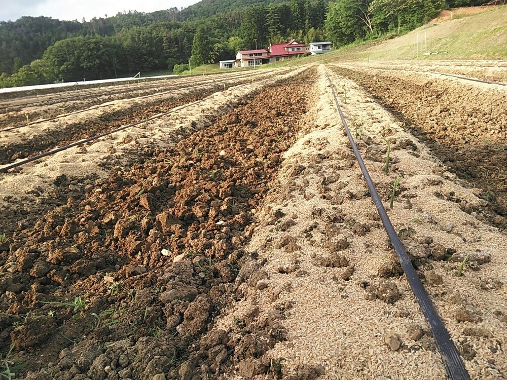 しょうがは成長するのに合わせて土寄せできるようにマルチを外して籾殻で代用。毎年のことですが7月からは忙しい季節になります。
