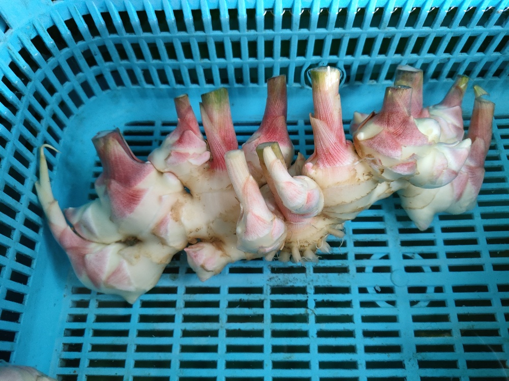 一昨日前から生姜の収獲を開始いたしました。 この写真は茎を切って根を取ったところの写真です。 ...