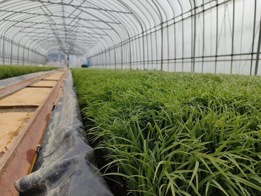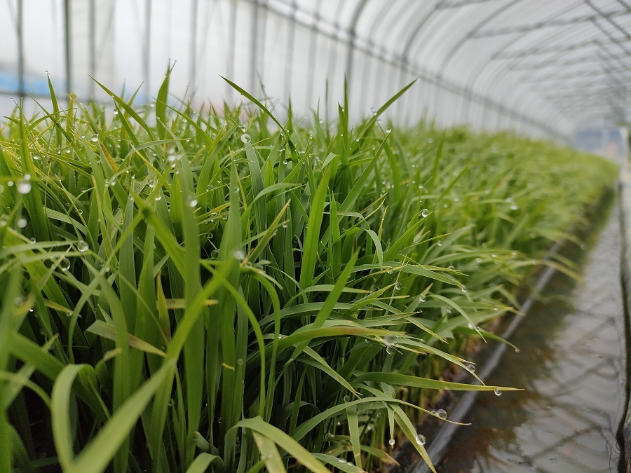 ハウスの中では田植えに向けて苗が大きく順調に育っています。毎朝水かけが今の日課です。