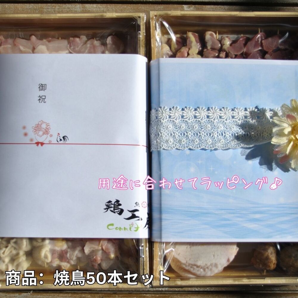 ▽焼鳥とかしわ焼肉が両方楽しめる【ハーフセット】のギフト用の例