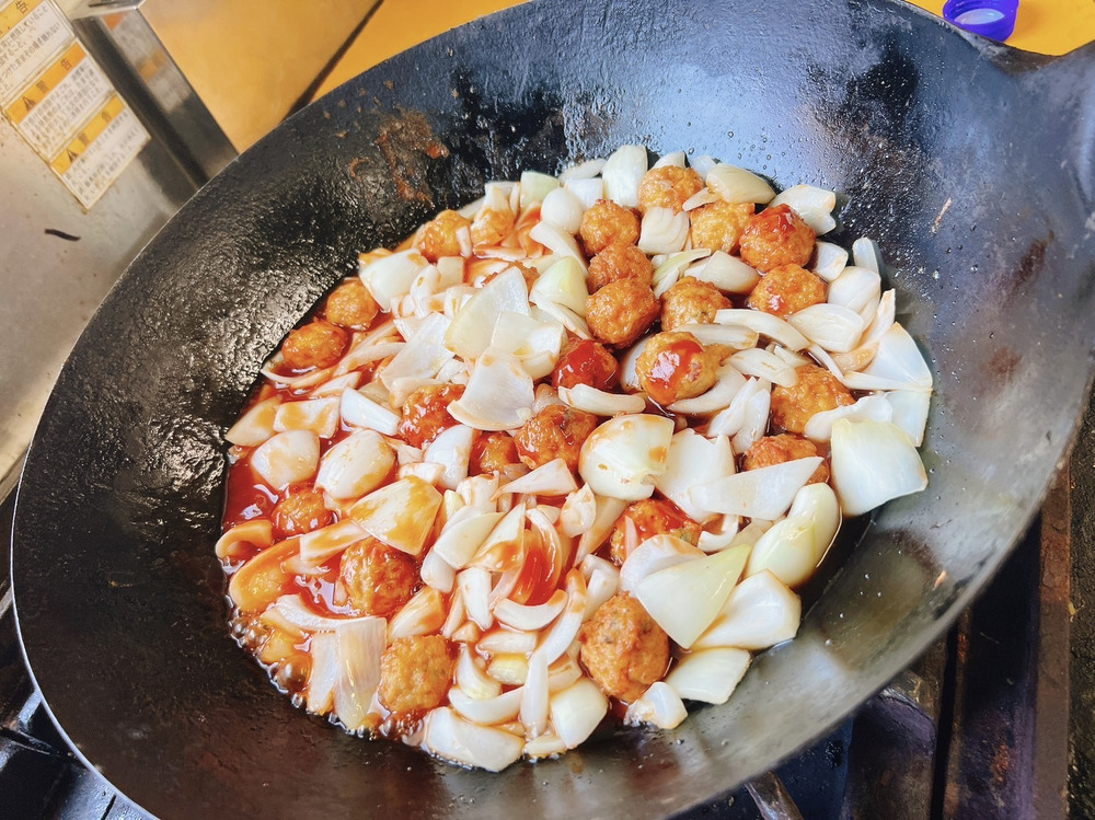④全体を回し炒めて野菜に火が通ってきたら甘酢投入です!