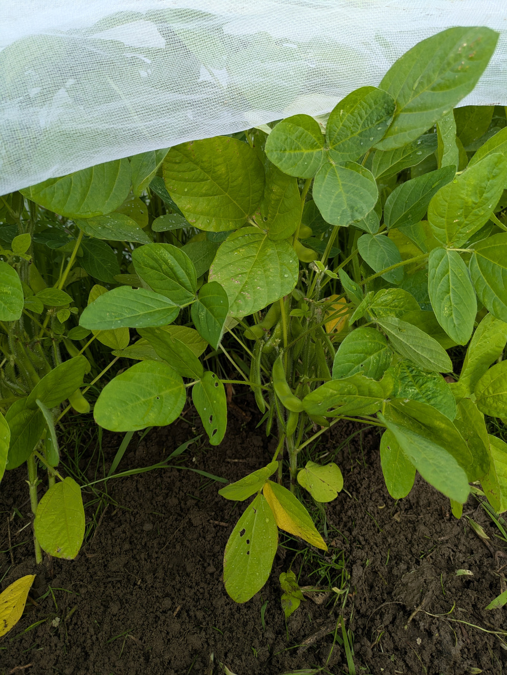 そこで、今年は定植直後からすべての枝豆に防虫ネットをかぶせています。(防虫ネットを使わないと無農薬ではこの時期の栽培は難しくなってきている)