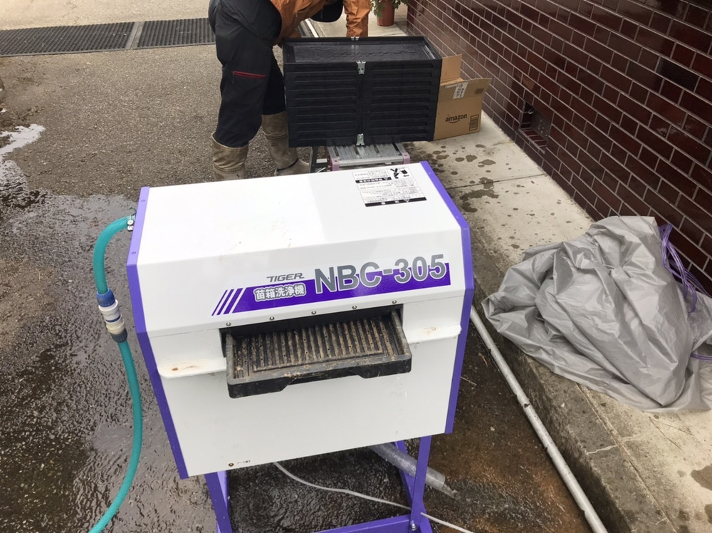 初日は受託の田植えから🌱田植えが終わった苗箱は専用の機械で洗います🚿