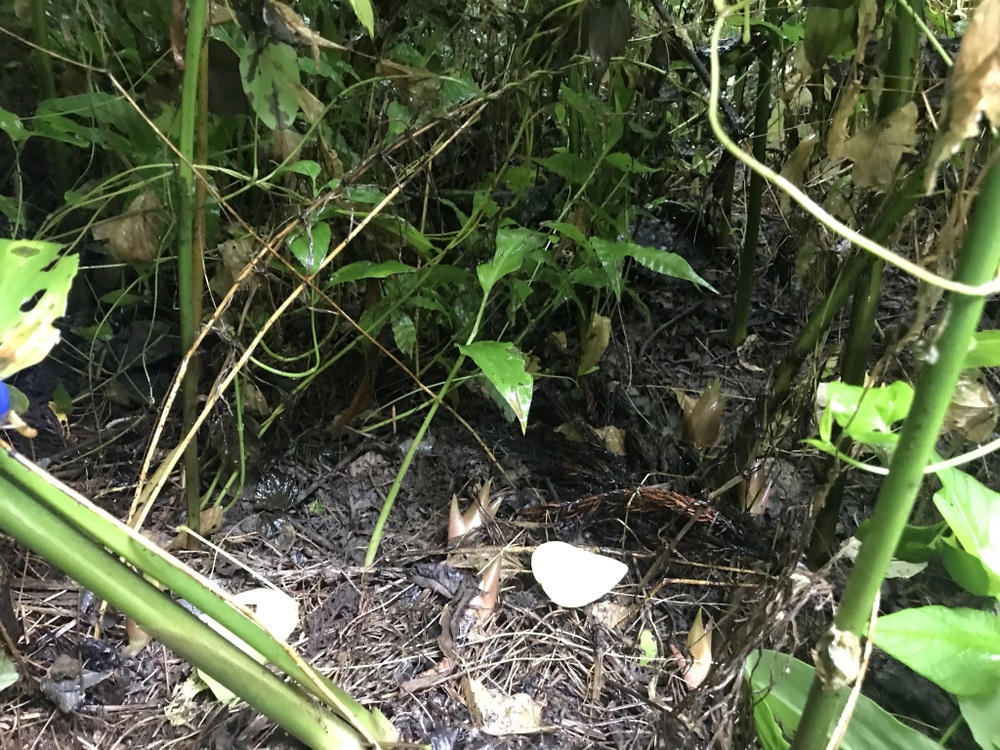 ミョウガ畑は山のふもとにあり草をかき分け収穫します。