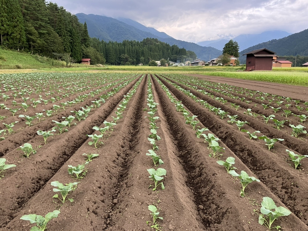 イエロー様土を起こしながら左右に跳ね上げ土を寄せて行きます。平植えした苗に成長に合わせて後から畝を作って行きます。最初から畝を作り植えて行く方法もありやり方はそれぞれです😊