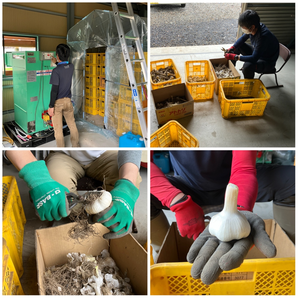 乾燥が進んだのでにんにくの根切りスタートです✂️根や皮を取りきれいにして行きます。根気のいる作業です😂