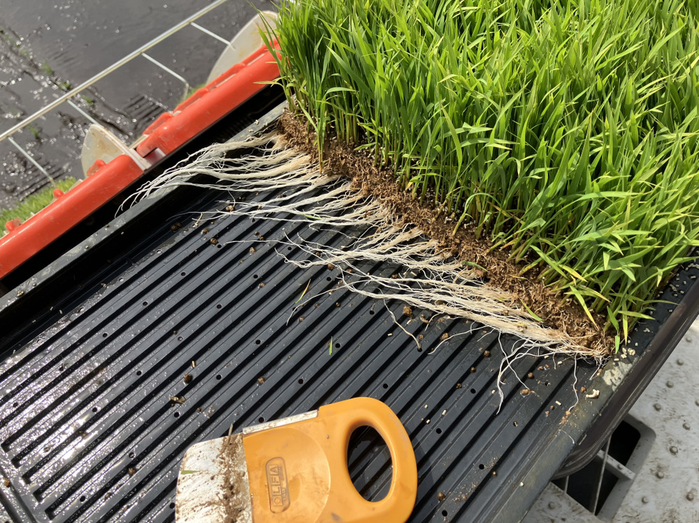 受託田植えが終わりました。初めてチャレンジしたプール育苗の苗は根張り良くできました🌱✨