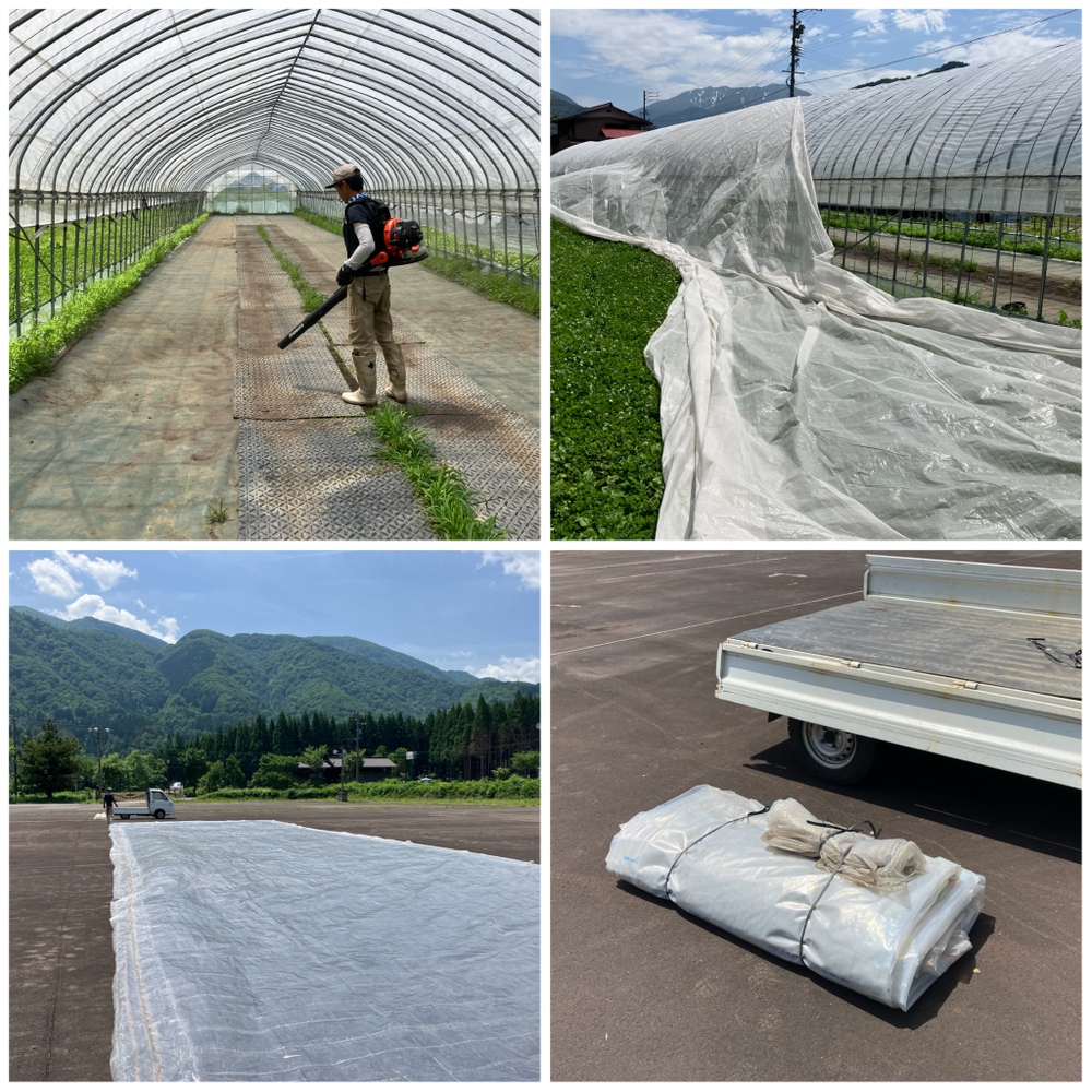 育苗ハウスを片付けました。約40mのビニールは2人でやっと運べる重さです💦