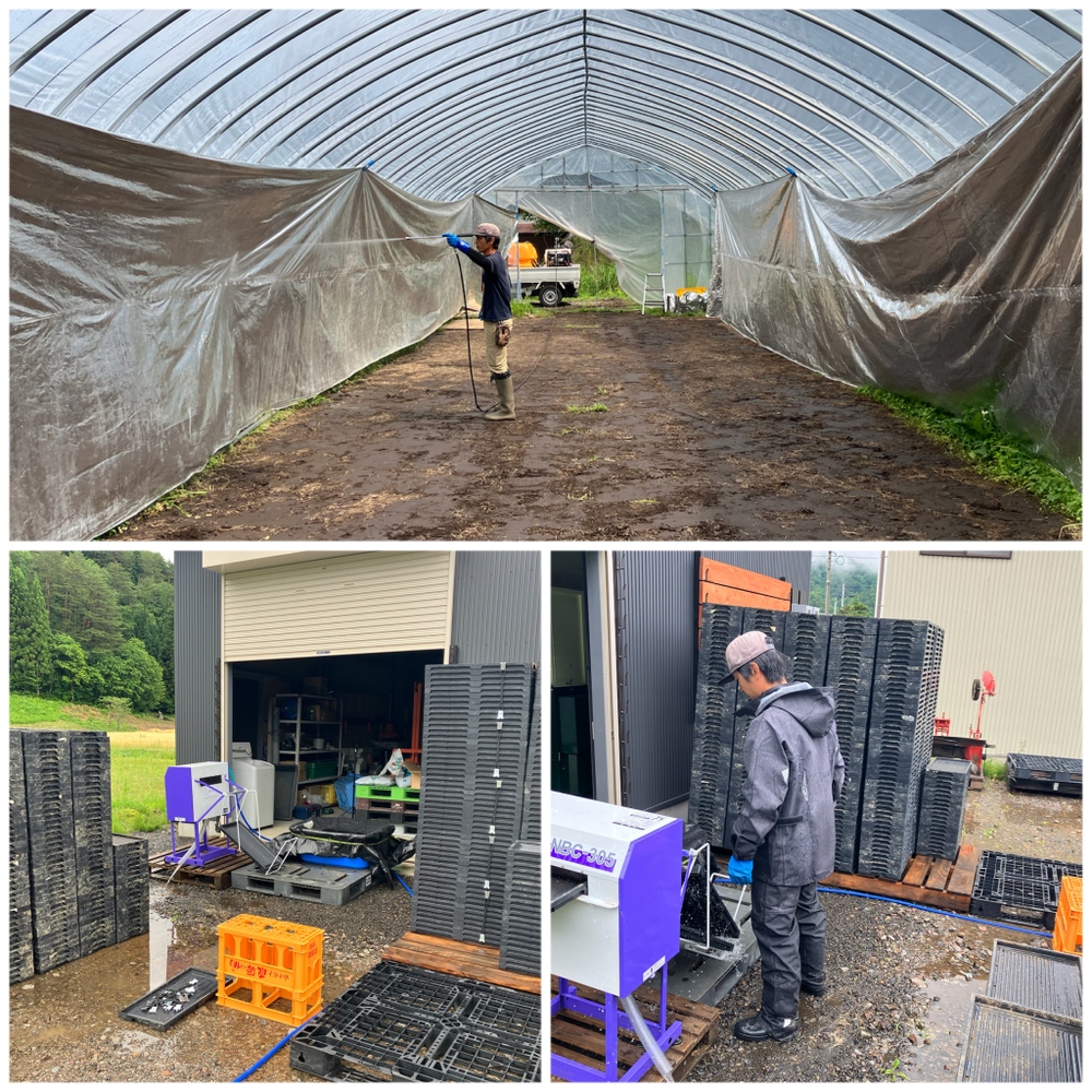 田植えが終わり順番に片付けをしています。今日は苗箱洗い。