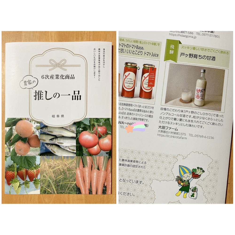 岐阜県の6次化商品カタログに甘酒を掲載していただきました🌾✨岐阜県のキャラクター、ミナモもPRしてくれています😊