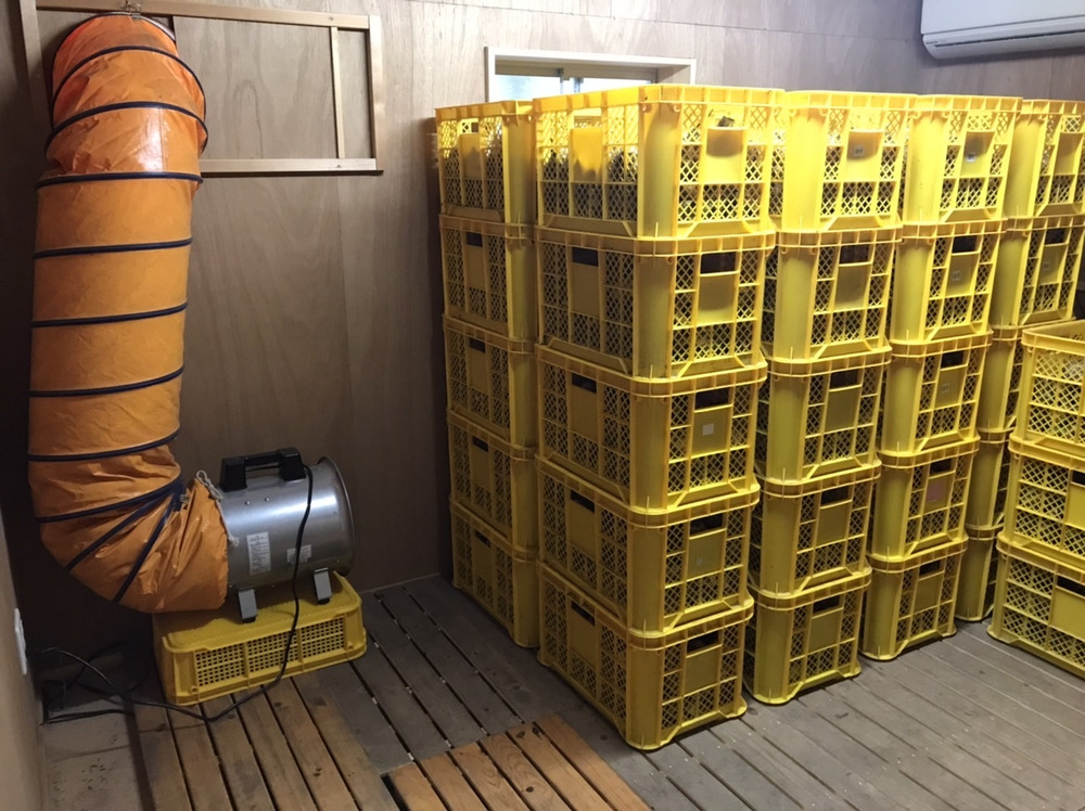 倉庫を改装してにんにく乾燥室にしています😊重さを測りながら温風乾燥します。