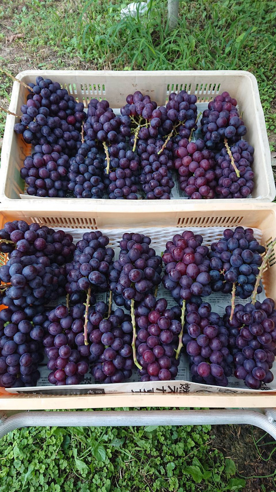 明日(金曜日)より天候が悪く、台風の影響が心配になり、本日オリエンタルスター🍇の最後の収穫をし、発送を行いました。