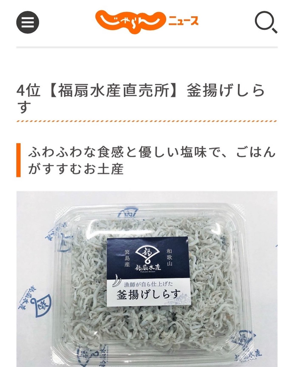 しらす部門は全体の4位ですが、しらすの中では我々のしらすが1位に選ばれました✨
