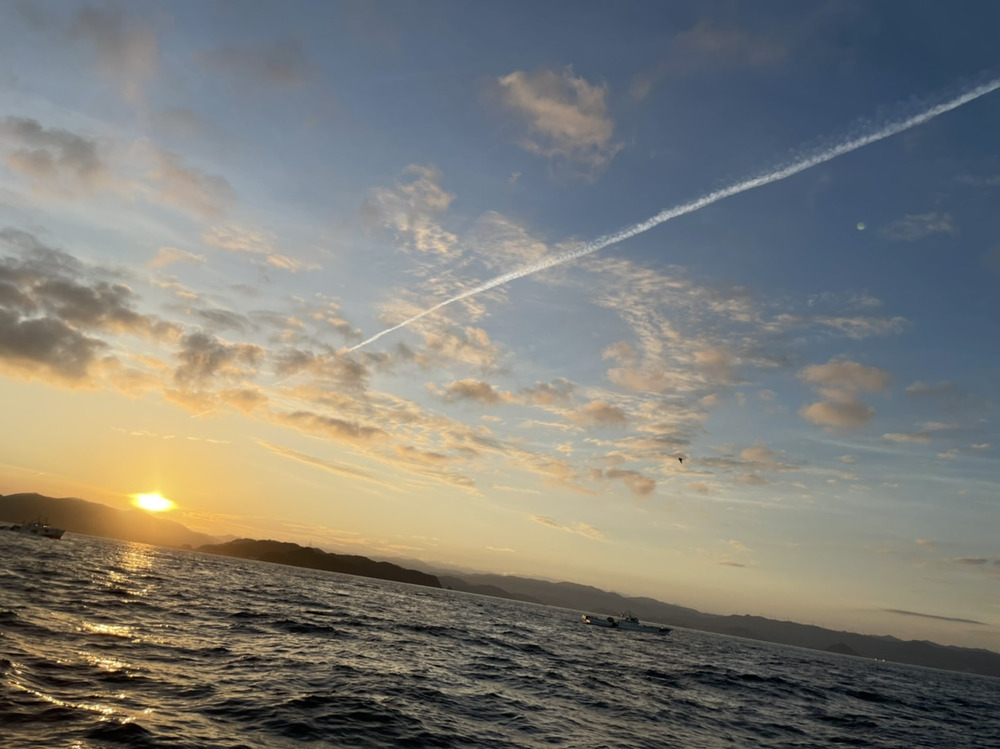 朝日と共に飛行機雲が良い感じに撮れています😊👏
