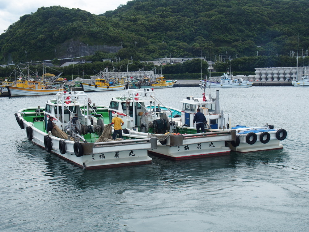 基本的に魚を探して誘導する船、網を引っ張る船2隻、しらすを運搬する船とトータル4隻の船でしらす漁を行っております。