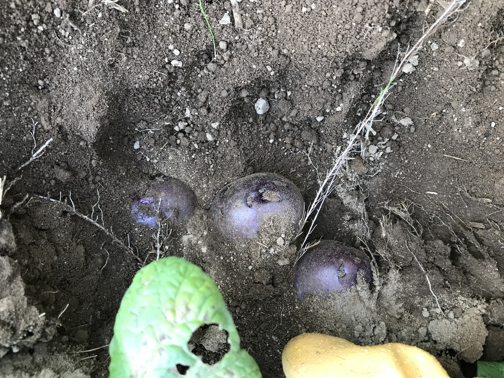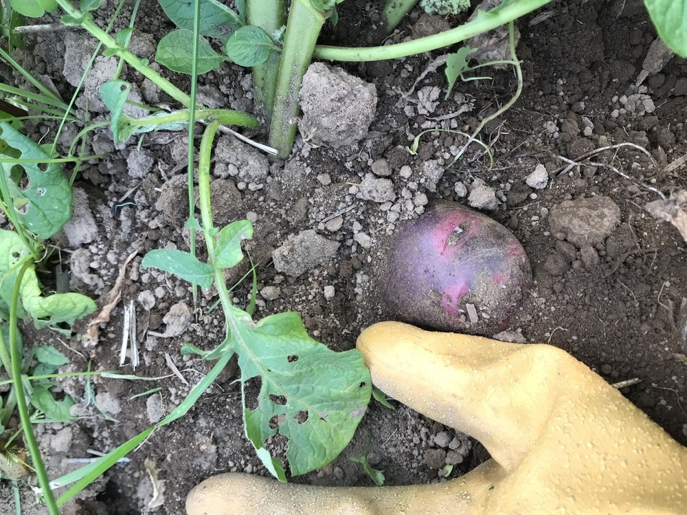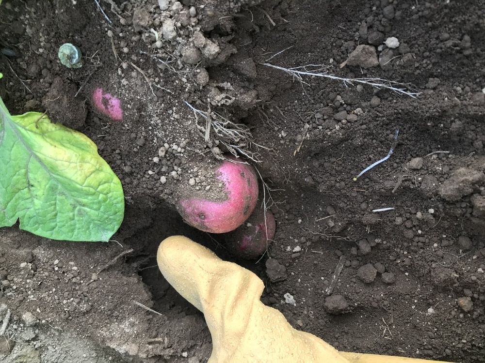 だいぶ花は終わっておりました。肝心なイモの肥大状況は雨不足もありまだもう少し時間が必要かなと。