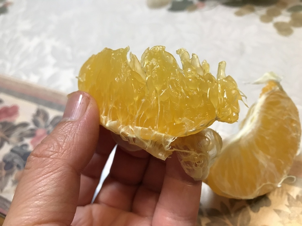 色味も不知火に比べて黄色いですが、これで完全着色状態なんですよ!レモン色でいかにも酸っぱそうに見えるけど、味も不知火に引けを取らない旨さを持っているんです😄