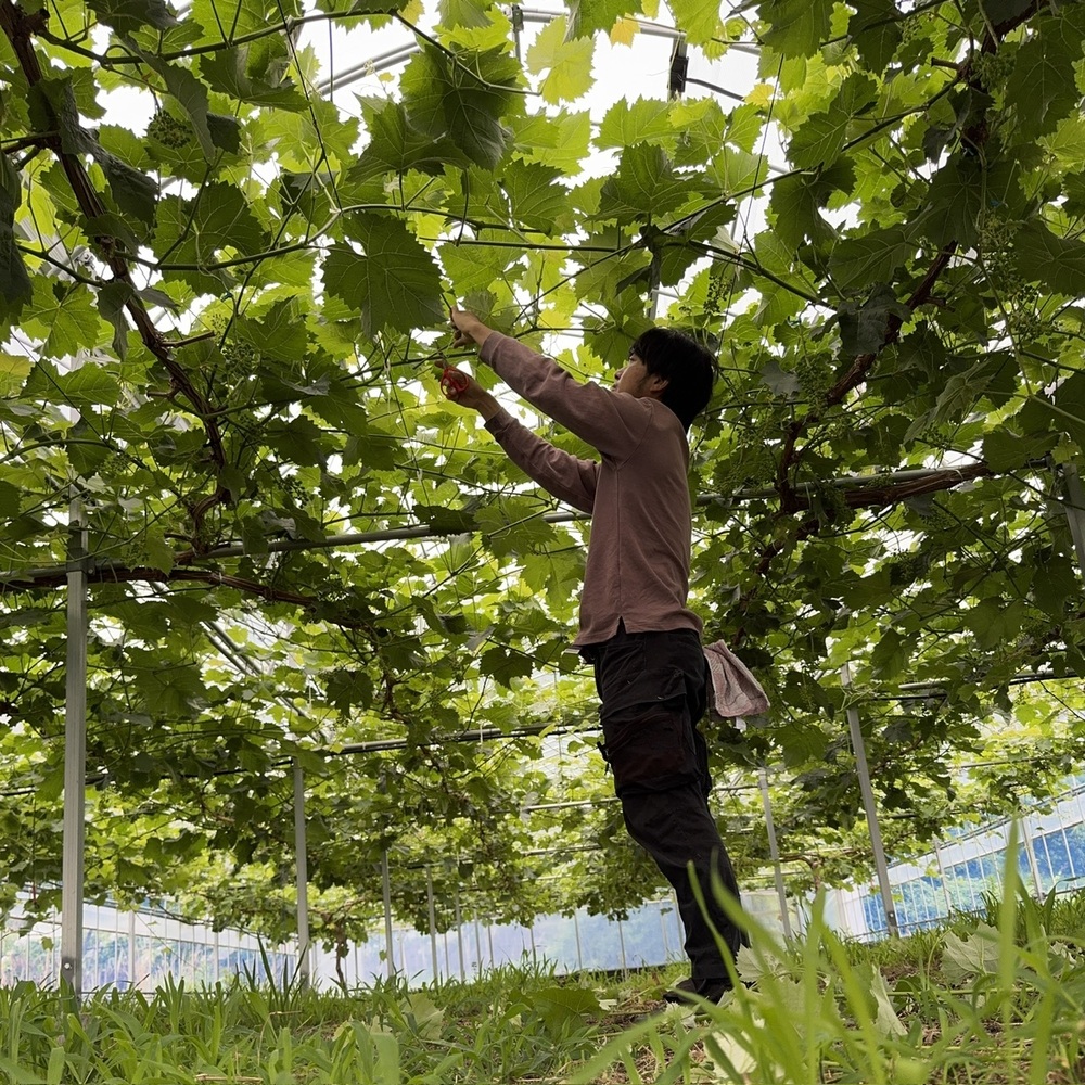 葡萄の栽培の中でも一番手間がかかる作業である【粒間引き】をしています🧑🌾