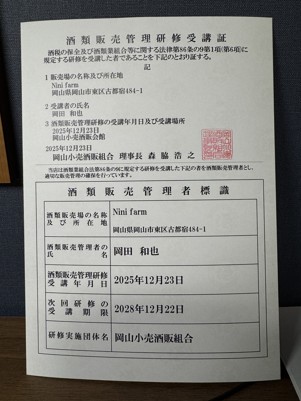 今年は 是里ワイナリー さんに当園のワイン用葡萄を委託醸造していただいており、現在はそのワイン販売に向けて免許取得の手続きを進めています✊🏻