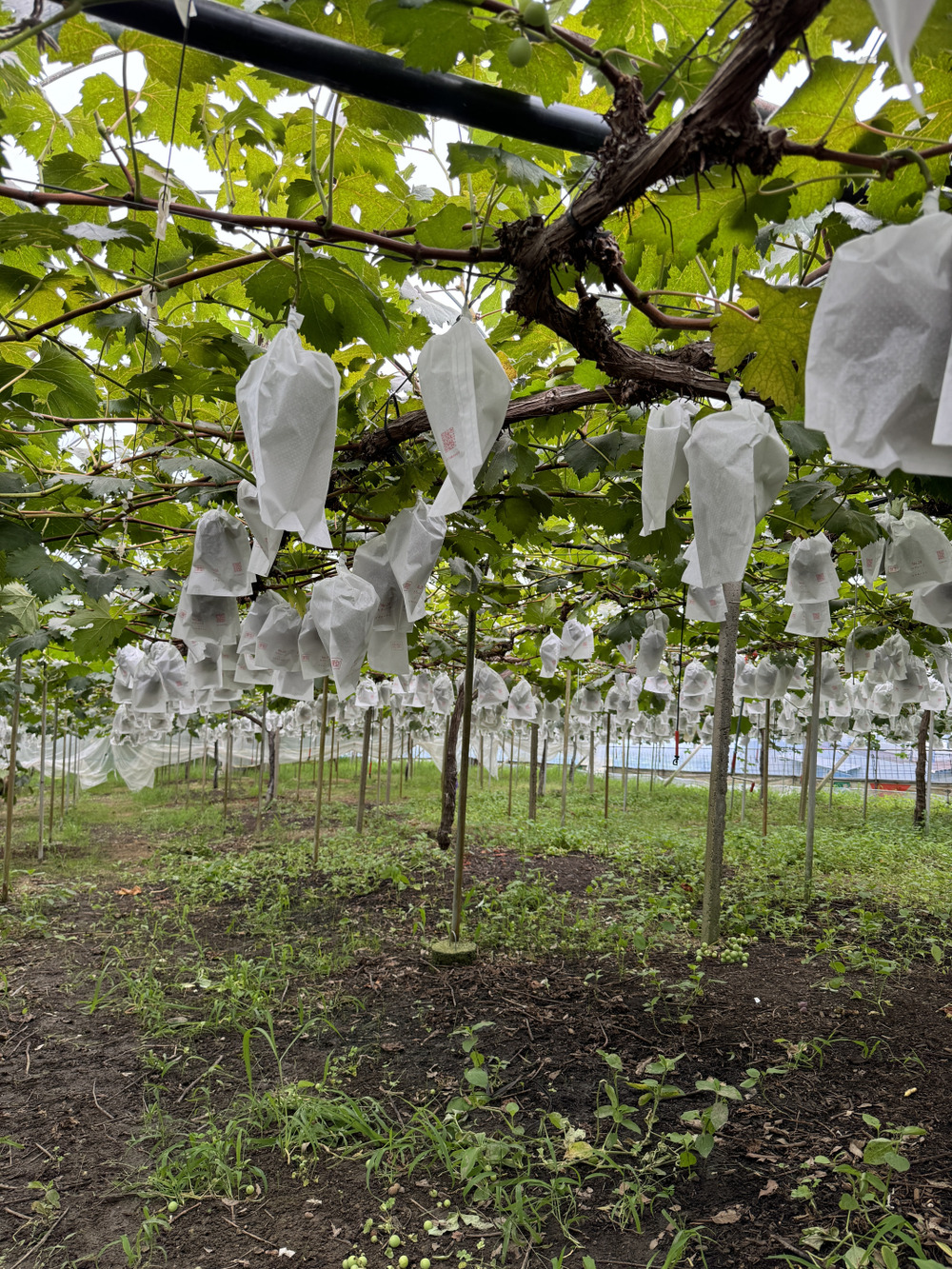 7月下旬から出荷のニューピオーネに病害虫から守る為の袋をかけました🧑🌾
