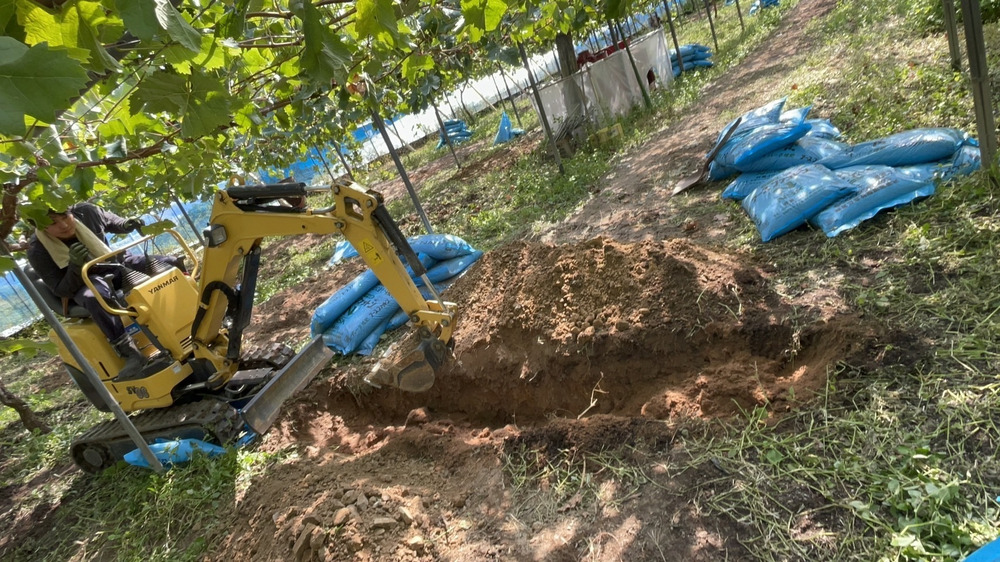 調子が悪かった木には部分深耕といって、根がある箇所の土を掘り起こり、堆肥や土壌改良材を混ぜ込んでいきます。