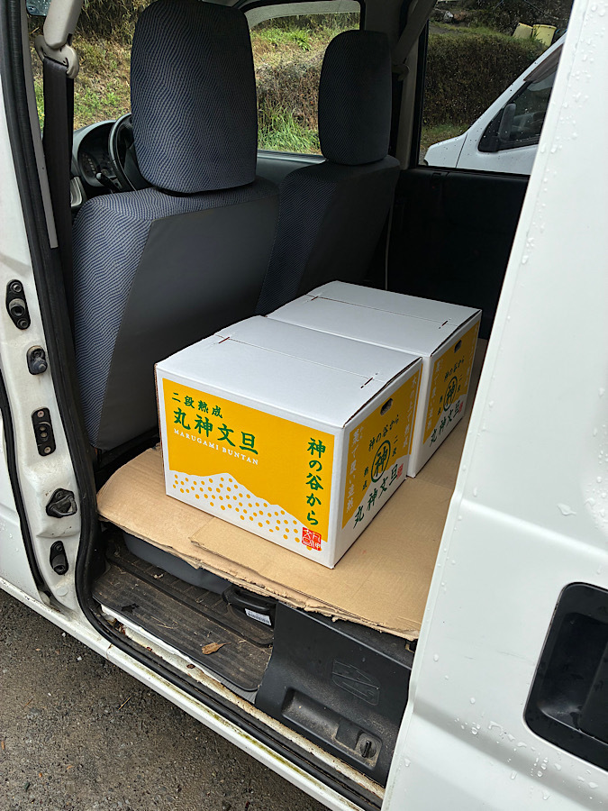 今週日曜日に高知市の中央公園で開催される「文旦祭り」に向けて、無償提供する文旦をJAへ持って行ってきましたー。