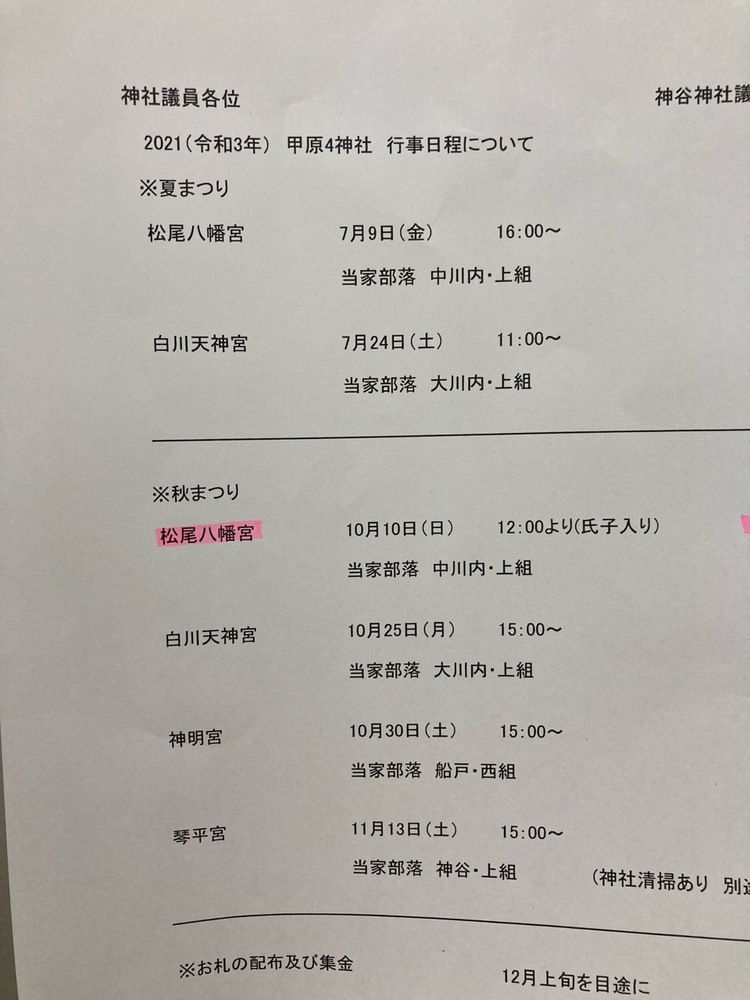 10月に氏子入り(お宮参り)があるので、そのスタッフとして準備とかをするそうです。